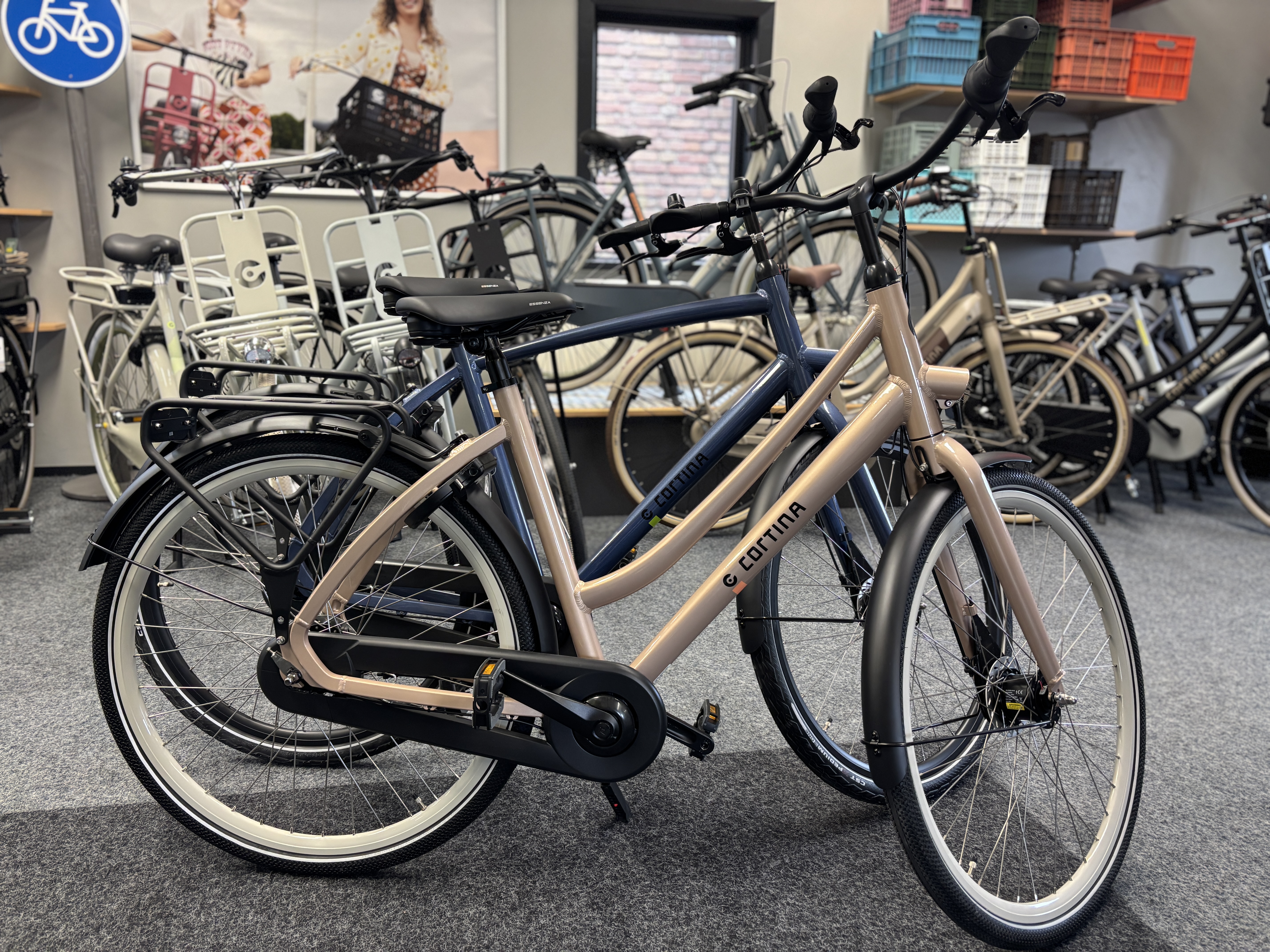 Welkom in onze showroom van ruim 400m2 verdeeld over 2 verdiepingen. Hier vindt u een ruim assortiment stads- trekking- en toerfietsen.